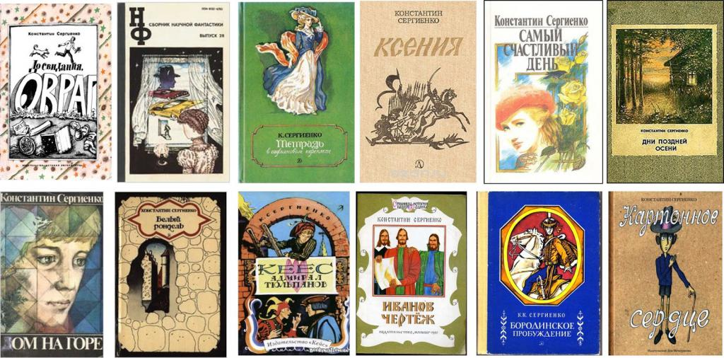 Главная героиня «Ксении» (1987) — царевна Ксения Годунова. Действие «Белого ронделя» (1983) происходит в Дерпте (Тарту) 1625 года, «Увези нас, Пегас» (1979) — во время войны Севера и Юга в США (её герои, белые подростки, спасают негров-рабов). Ещё одна историческая повесть Сергиенко — «Тетрадь в сафьяновом переплете: записки Дмитрия Почивалова, сделанные им во время путешествия по Малороссии и Тавриде в 1786 году» (1989). «До свидания, овраг» Наибольшую известность получила повесть Константина Сергиенко