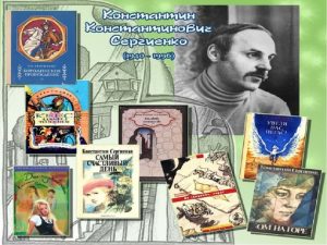 В библиотеке прошло мероприятие посвящённое юбилейной дате автора. Присутствующим было рассказано о жизни и творческом пути Константина Константиновича Сергиенко. Говорили о том что он окончил редакционно-издательское отделение факультета журналистики Московского государственного университета (1967). Владел немецким, французским, английским языками. Сотрудничал с исторической редакцией издательства «Детская литература», издательством «Молодая гвардия». Автор книг для детей и юношества, ряд из которых посвящены историческим темам. Основные произведения: «Кеес Адмирал Тюльпанов», «Бородинское пробуждение», «До свиданья, овраг», «Дом на горе», «Ксения», «Увези нас, Пегас!», «Картонное сердце», «Белый рондель», «Дни поздней осени», «Самый счастливый день».
